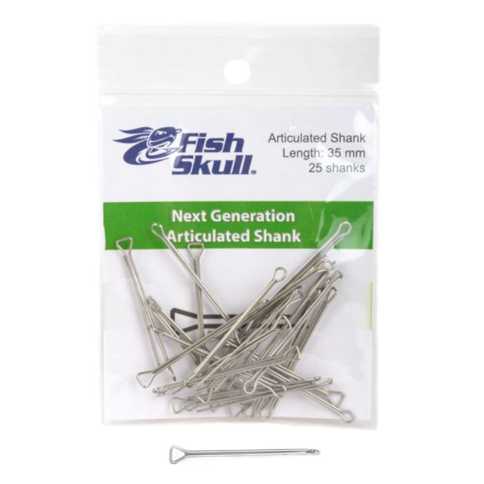 Vi har fundet Fish Skull Articulated Shank Next Generation fra Fly-dressing hos Fiskegrej.dk i kategorien Produkter Fluefiskeri Fluebinding Diverse. Disse shanks gør det nemt at binde leddelte fluer. De fæstnes blot i krogøjet og bindes sammen, og så har man en meget stærk og livlig flue. De har mange anvendelsesmuligheder, og bruges f.eks. ofte til geddefluer og børsteormsimitationer.